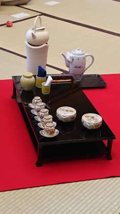 世田谷区の、梅丘中学校、弦巻中学校、喜多見中学校の3校が、羽根木公園にある茶室で、浴衣を纏い、煎茶道のお点前を披露してくれました。(副校長)