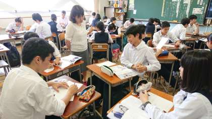 生徒の考えを何通りも出すために、教材を工夫しています。(副校長)