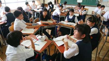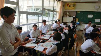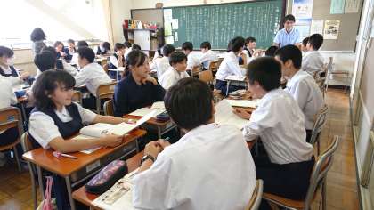 生徒の考えを何通りも出すために、教材を工夫しています。(副校長)