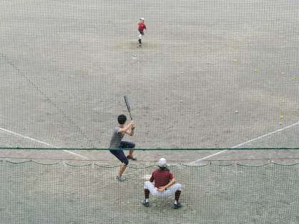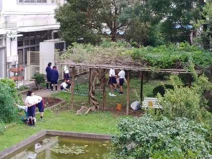 野球部は先生に打席に立ってもらい、ピッチング練習をしていました。