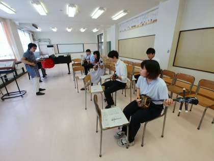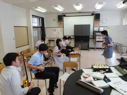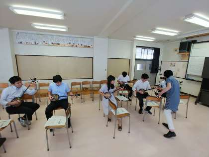 音楽の先生を講師として、日本の伝統文化「三線」について勉強しました。