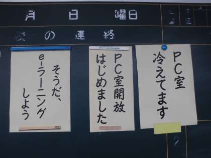 パソコン室は8:30から10:30eの間、e-ラーニングのために開放しています。