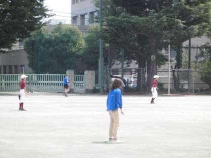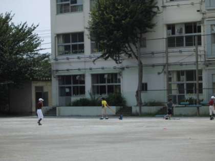 野球部の様子です。 小学生がバッティングしています。保護者の方も練習に参加してくださいました。