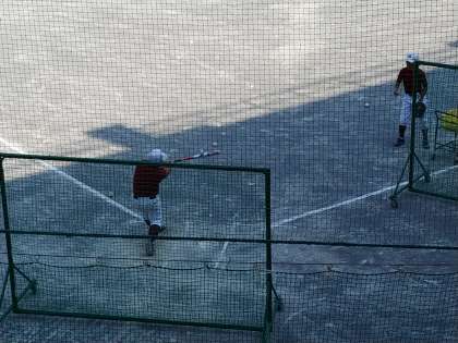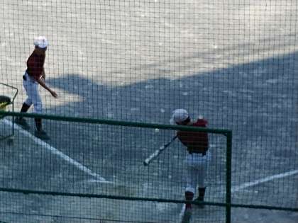 激しいメニューではなく、トスバッティングでバッティングフォームを調整しています。