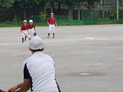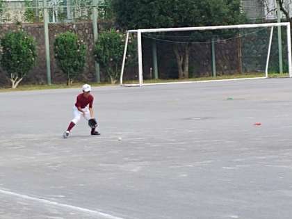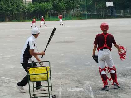 お昼過ぎは気温高いので格技室で軽いトレーニングをするなどして、気温が下がるまで待機してから校庭で練習をしています。