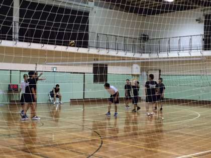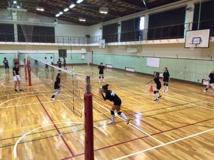 炎暑の中、バレーボール部は体育館で練習に励んでいます。