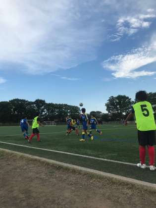 サッカー部は練習試合をしています。良いプレーも出ましたが、まだまだ課題は多いです。頑張れ!