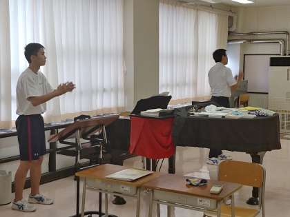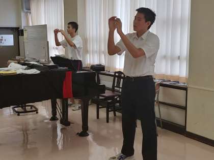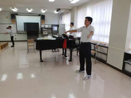 夏休みを利用して、音楽の先生が合唱コンクールの各クラスの指揮者・伴奏者のレッスンを行っていました。