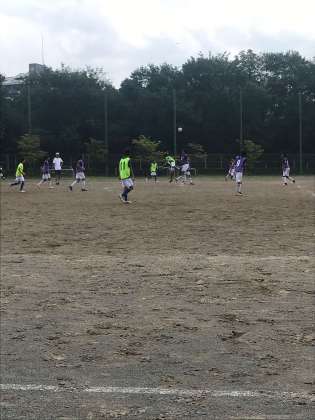 サッカー部は夏休み最後の練習試合をしています。広いグラウンドでも一生懸命追いかけています!