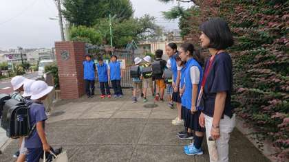 生徒会のあいさつ運動、7:50〜8:15、生徒会役員7名と有志生徒7名の合わせて14名で参加させていただきました。「おはようございます!」の挨拶に元気に手を振りながら答えてくれる小学生、はずかしそうにしながらも声を出して挨拶を返してくれました。みんな元気に2学期をむかえているようで、中学生も元気をもらったようです。(副校長)