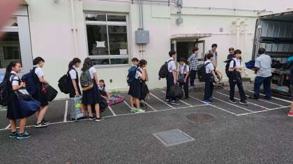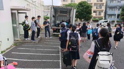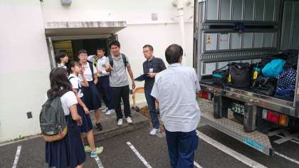 明日からの9月6日(金)〜8日(日)の修学旅行で使用する着替え等が入った大きな荷物をトラックに搬入して、宿に先に送ります。明日から晴れるといいですね!(副校長)