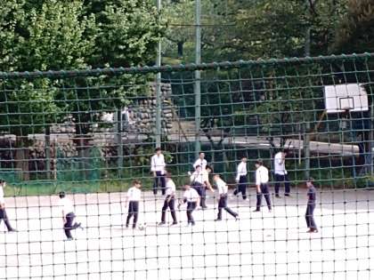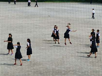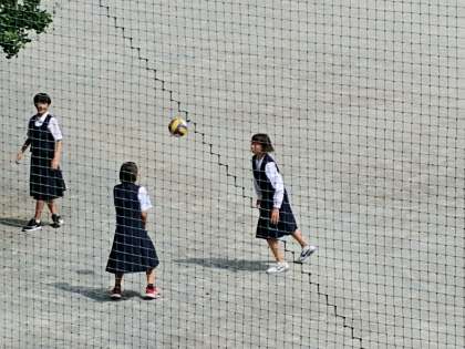 昼休みの校庭では、生徒たちが楽しそうに遊んでいます。