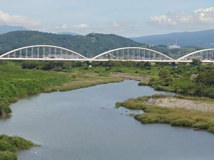 車内では車掌さんが車窓の案内をしてくださっています。富士山と富士川の鉄橋です。
