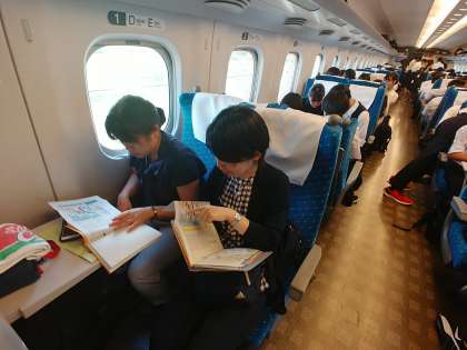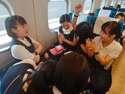 先生たちは打ち合わせ中です。生徒たちは盛り上がっています。