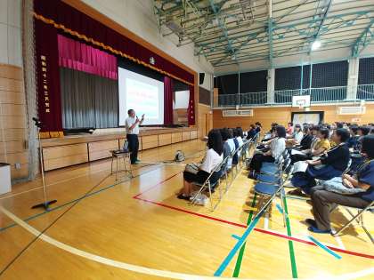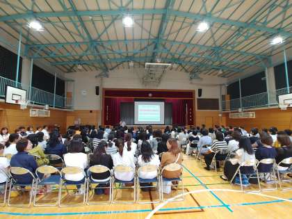 代田小学校の保護者会に続き、 私(梅中校長)も参加させていただき、梅丘中学校についてお話をさせていただきました。