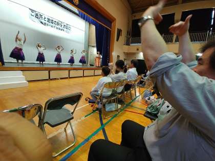 途中、体験コーナーもあり、副校長先生も一生懸命に上半身の振付を頑張っていました。