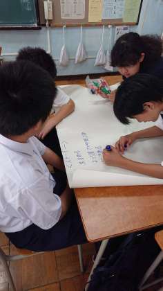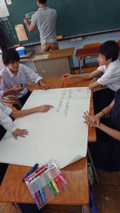 今回はいじめっ子はどんな生き方をしてきたか、表のかお、裏のかおを模造紙に表現します。