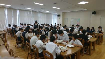1年生、3年生の兄弟クラスで一緒に給食をたべました。先輩の準備の早さやマナーを学びつつ、普段あまり話すことのない先輩とも交流することができました。