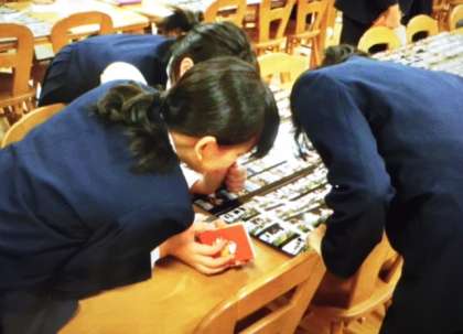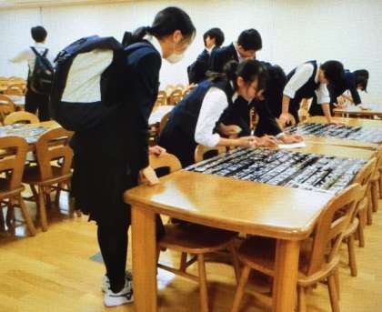 何人もの生徒たちが真剣に食い入るように見つめています。