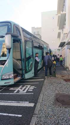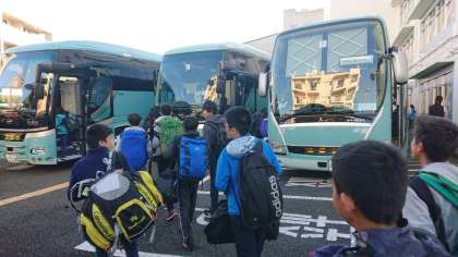 晴天に恵まれ、4台のバスにクラス毎に乗り込み出発します。3日間何事もなく活動出来るといいですね!