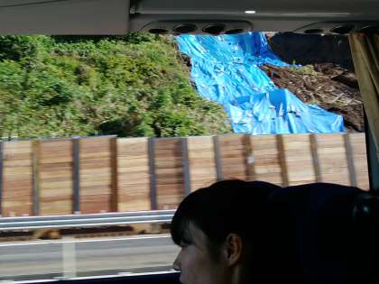 談合坂よりも前でしたが、土砂崩れがあった場所を通りました。
