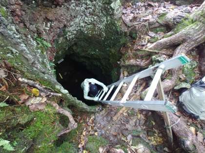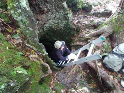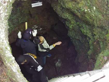 今度は縦穴から中で横に3つに分かれた溶岩樹型に入ります。
