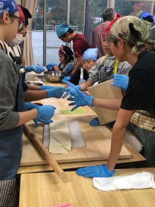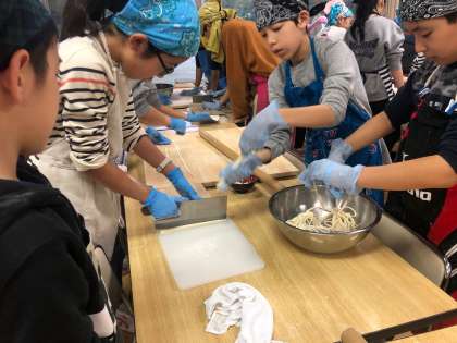 包丁の使い方に気をつけてめんを切り、ちぢれないように軽くほぐします。