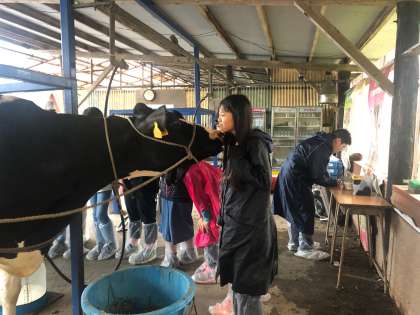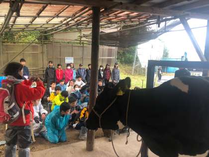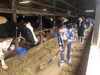 はじめはビクビクしましたが、ブラッシングや餌やり、乳搾りを体験していくうちに、牛のあたたかさを感じるようになり、表情もやわらかくなってきました。