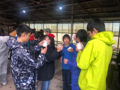 牧場の方が提供してくださったパンと新鮮な牛乳と一緒にいただきまーす。