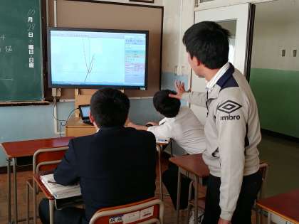 実際に生徒がパソコンを操作しながら、みんなで考えていました。