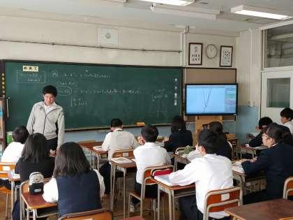 ICTを効果的に活用し、グラフの交点について学習していました。