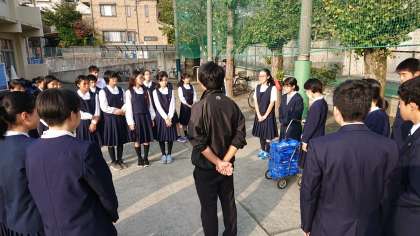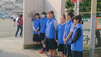 新生徒会になって、2学期初めての大きな仕事です。朝7:50〜ボランティア生徒30名以上の参加の中小学生のあいさつ担当生徒と一緒に、大きな声で「おはようございます」と声かけをしました。