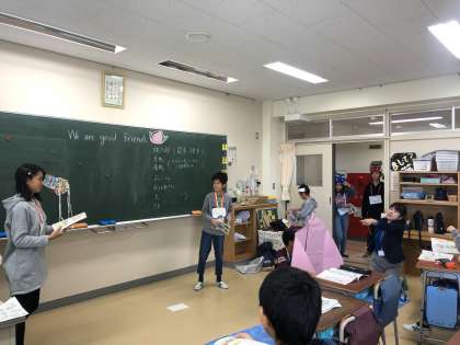 鬼の台詞の "I'm strong." "We are strong."や、桃太郎と動物たちがそろって言う台詞の"We are good friends. Let' go to Onigashima!."を元気に発音していました。