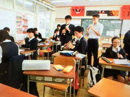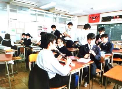 5校時に、音楽のリコーダーのテストが控えているクラスは、朝も昼も練習に余念がありません!