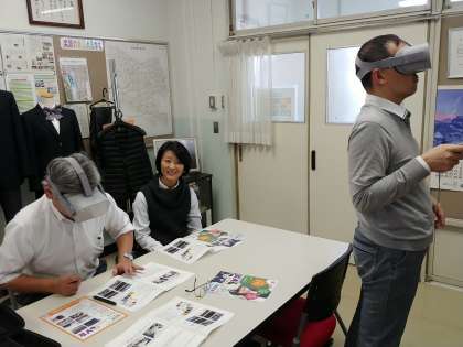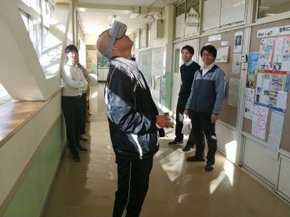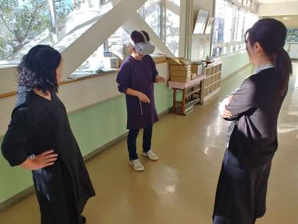 本日、定期考査の午後の時間を利用して、VR(バーチャルリアリティー)の体験と研修を行いました。