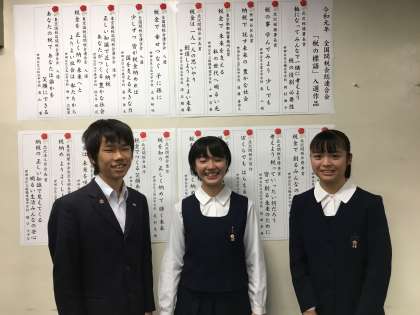 世田谷区内の2804人の中より、梅中からは3年生3人の生徒が受賞しました。おめでとうございます。