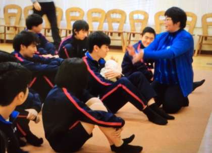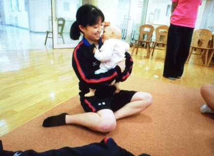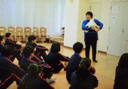 はじめに、抱き方を教えていただき、人形で練習しました。