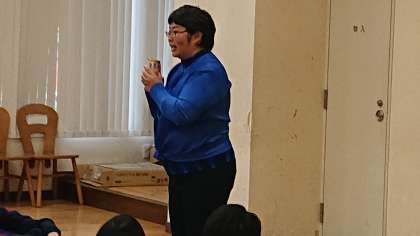 赤ちゃんの頭は首も座っていないし、あまり激しく揺さぶると脳に損傷をあたえることもあります。揺さぶられっ子症候群というものがあるそうです。瓶の中に生卵を入れたものを激しく振って実験してくれました。卵の黄身が崩れていました。最後にお礼の挨拶をしておわかれです。(副校長)