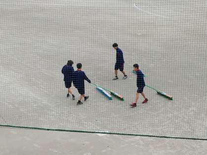 その横で、朝練を終えた野球部の生徒たちが校庭をならしていました。