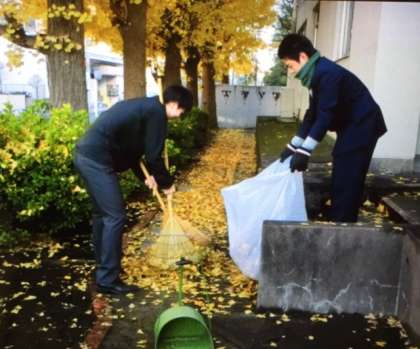 早朝から、美化委員や生徒会役員、ボランティアの生徒たちが集まり、落ち葉掃きを手伝ってくれました。