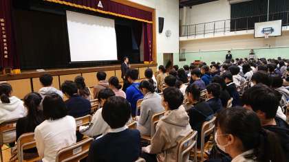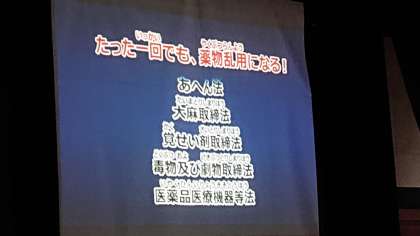 「インターネット被害について」、「危険薬物について」の2項目について、被害に遭わないために、DVDの視聴と講話をして頂きました。特に危険薬物に関わる未成年者が増加しており、先輩、後輩の関係で繋がっていることが多いそうです。そして、ポイントとして