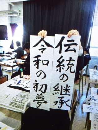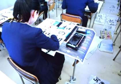 国語の授業では、一足早く、書き初めの作品づくりを行っていました。力作揃いです!