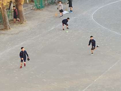 校庭では、野球部と硬式テニス部が活動していました。