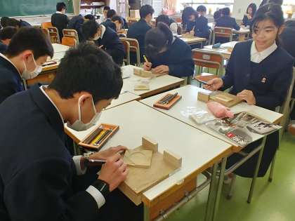 1年生の美術は、木彫の授業でした。