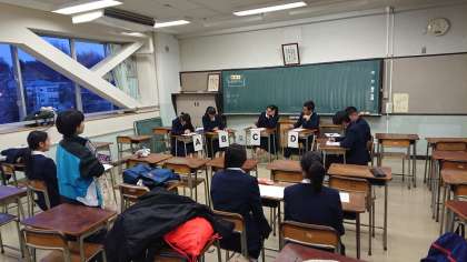 放課後に、都立高校の集団討論対策のための練習が行われています。都立高校では受検方法により、集団討論を行い、その後個人面接を行う所があります。お題は当日その場で初めて知らされ、その場で自分の意見を、初めて会う他の5〜6人のグループの受検生に、論理的かつ説得力のある根拠をもとに、10分〜15分程度討論をしなければなりません。普段から練習をしてなければ、実力を発揮できません。是非とも合格を勝ちとってください。応援しています。(副校長)