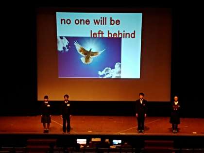 閉会式です。「持続可能な社会の実現のために踏み出す一歩」をテーマに各校の生徒会の代表生徒が頑張ってきました、その成果をしっかりと発表していました。