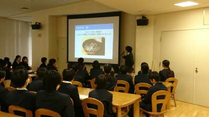 本校の栄養士、豊島先生による特別授業です。食文化をテーマに、和食の特徴や普段の給食で取り組んでいることなど、写真と共に楽しくお話をしていただきました。最後には生徒からの質問にも答えていただきました。毎日の給食にテーマを設定しているそうです。今週は全国学校給食週間です。各地の郷土料理や大人にとっては懐かしい料理が出されるようです。楽しみですね。