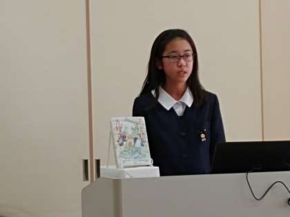 一年生の生徒も、読みたくなる発表でした。全体のトップバッターということで緊張もあったかもしれませんが、それを感じさせない発表でした。まだ、チャンスがあるのでがんばってください。