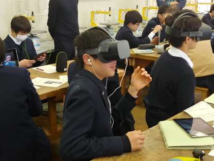 授業がんばっています(VRを活用した技術の授業・2年)2