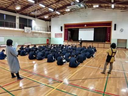 2年生は明日の校外学習に向けて、事前指導を行いました。